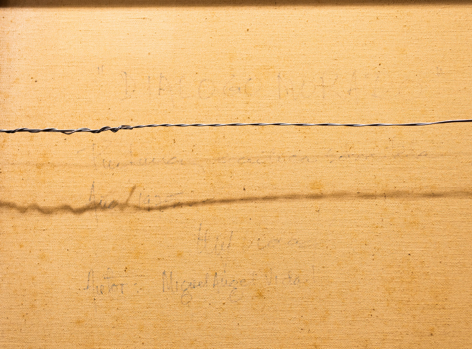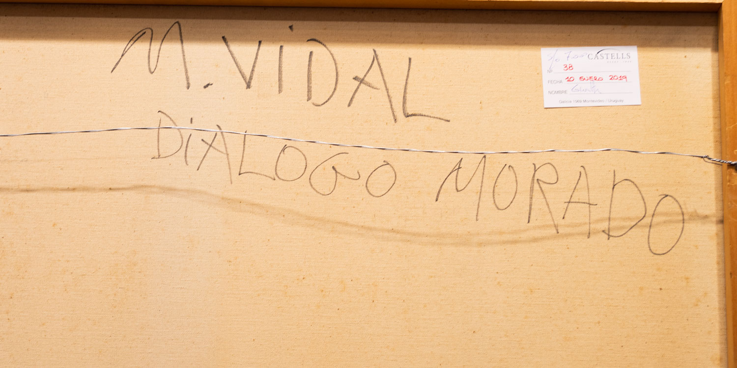 Acrílico sobre tela. Titulado, firmado y fechado Miguel Ángel Vidal, 1974, al dorso. Mide: 100 x 100 cm.