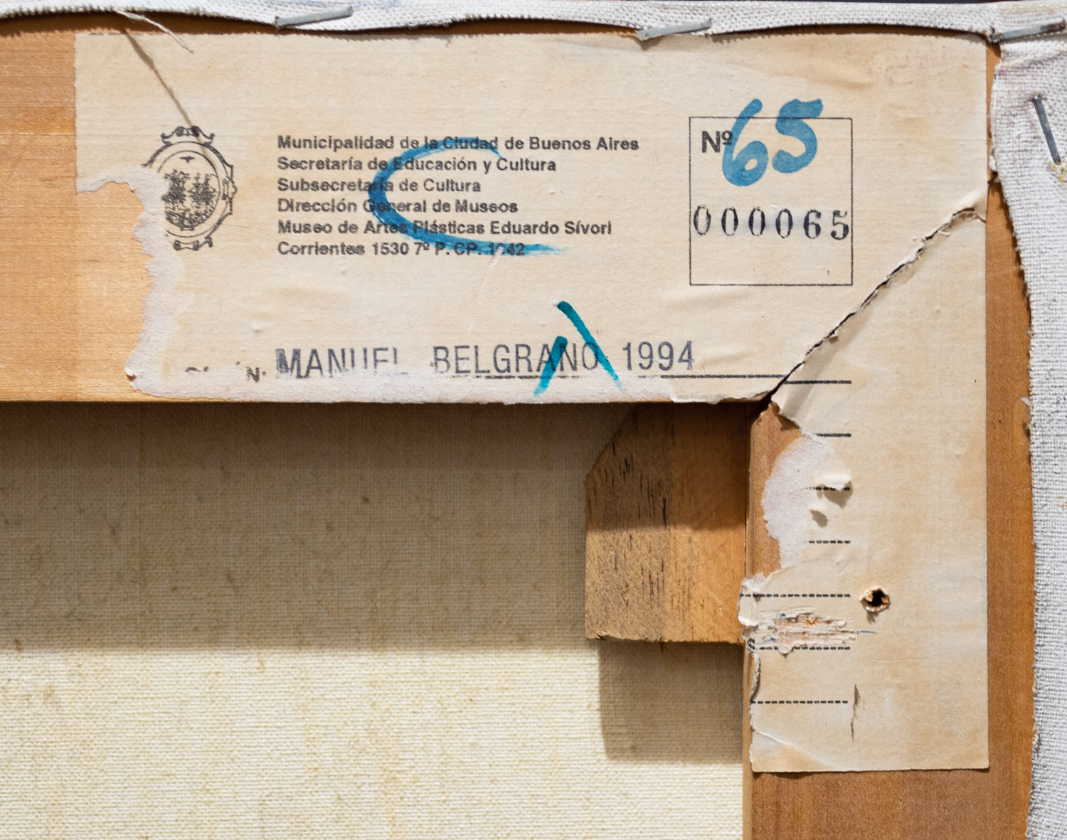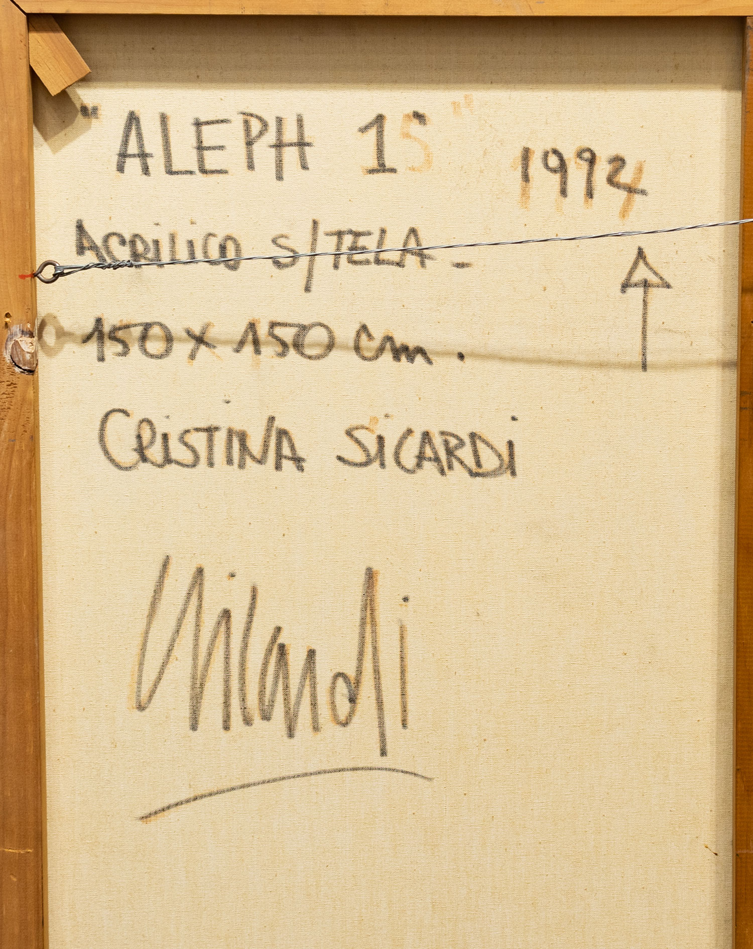 Acrílico sobre tela. Titulado, firmado y fechado Cristina Sicardi, 1992, al dorso. Mide: 150 x 150 cm. Ref.: Al dorso, etiqueta Salón Manuel Belgrano, 1994 (deteriorada).