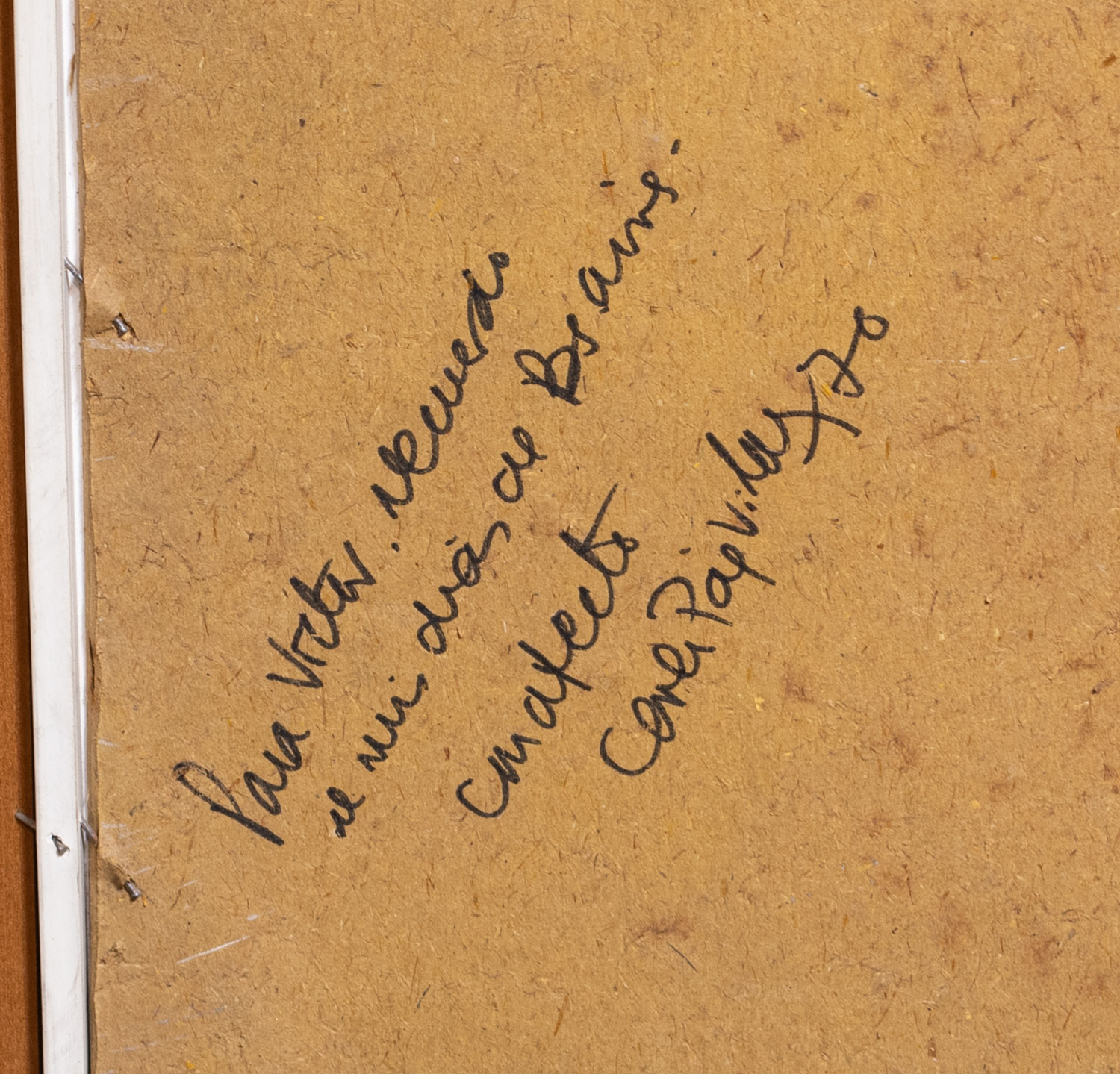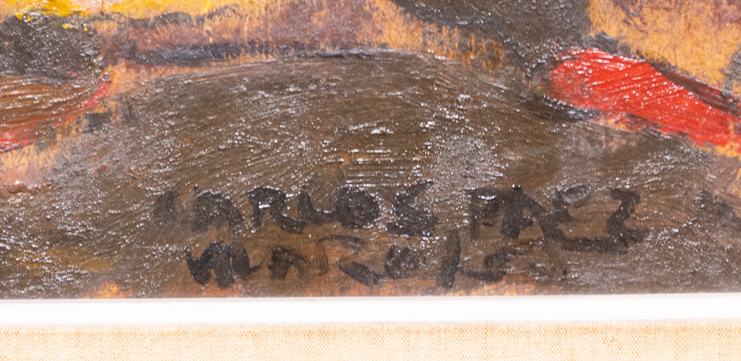 Óleo sobre cartón. Firmado Carlos Páez Vilaró, abajo a la derecha. Mide: 32 x 96 cm. Ref.: Al dorso, titulado, firmado, fechado 1955 y dedicado "Para Víctor, recuerdo de mis días en Buenos Aires. Con afecto Carlos Páez Vilaró/70".