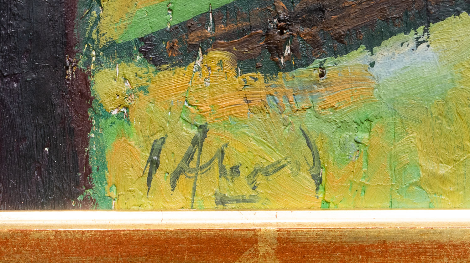 Óleo sobre aglomerado. Firmado C. Alonso, abajo a la izquierda. Mide: 91 x 91 cm. Ref.: Al dorso, etiqueta de Galería Palatina, con datos de la obra.