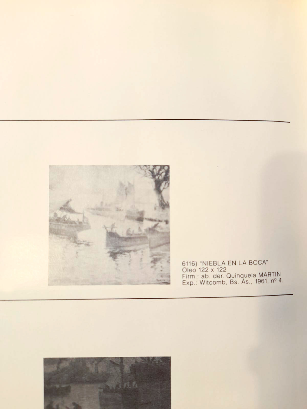 Óleo sobre hardboard. Firmado Quinquela Martín, abajo a la derecha. Mide: 122 x 122 cm. Ref.: Al dorso, titulado, firmado y fechado 1961. Expuesto en Galería Witcomb, 1961, N°4. Reproducido en "Quinquela" de Squirru y Gutiérrez Zaldívar, p. 174, N°6116.