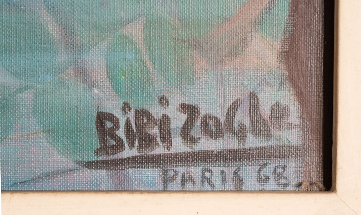 Óleo sobre tela. Firmado y fechado Bibi Zogbe, París/68, abajo a la derecha. Mide: 72 x 60 cm. Ref.: Al dorso, titulado, firmado y fechado.