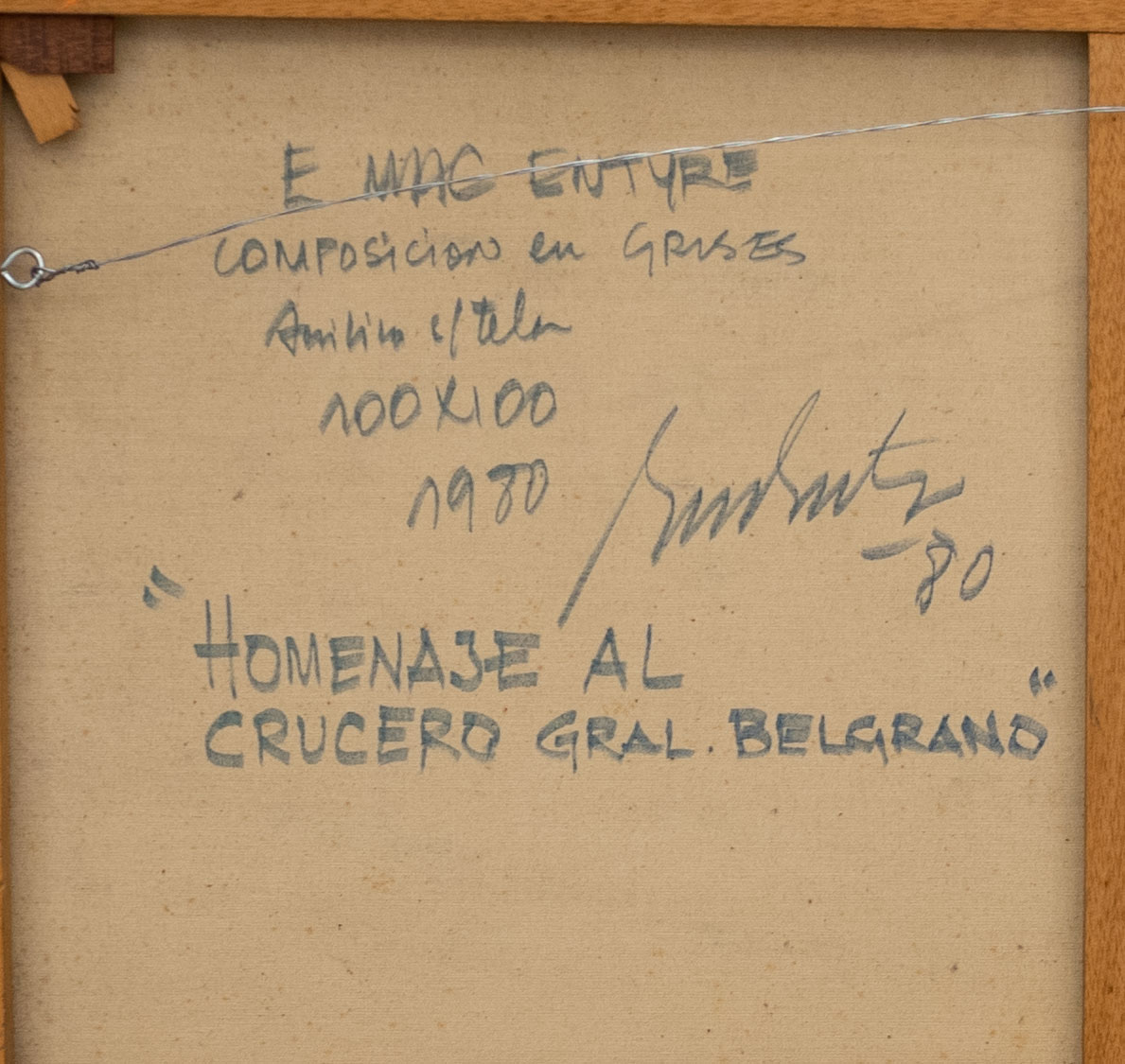 Acrílico sobre tela. Titulado, firmado y fechado Mac Entyre/80, técnica y medidas, al dorso. Mide: 100 x 100 cm.
