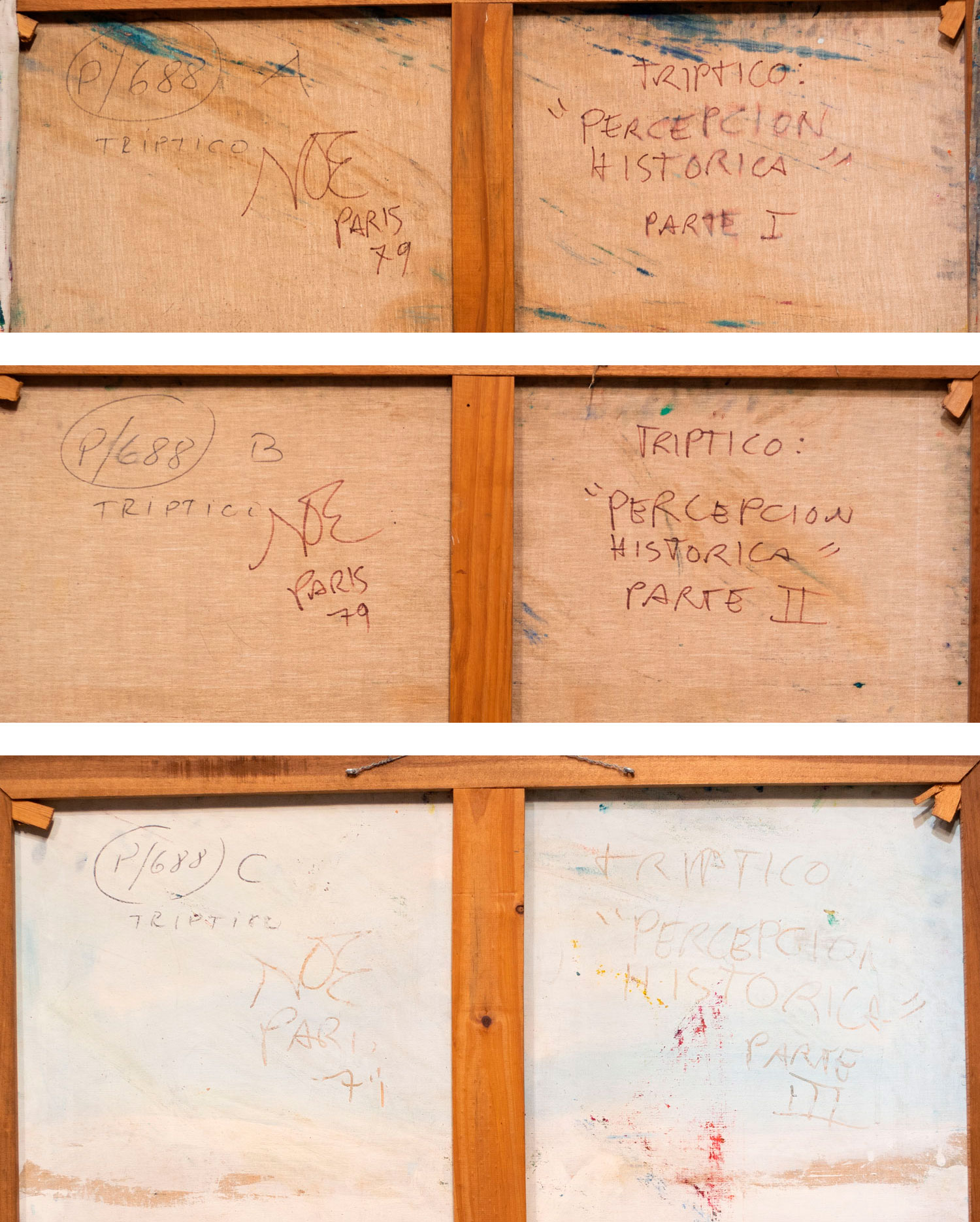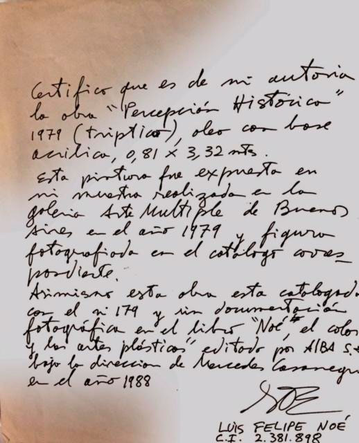 Óleo sobre tela. Mide: 81 x 107 cm. cada uno. Ref.: Certificado de autenticidad extendido por el artista, con datos de la obra. Expuesto en Galería Arte Múltiple, 1979. Reproducida en dicho catálogo. Reproducido en "Noé. El color y las artes plásticas" de Mercedes Casanegra, 1988, N°179.
